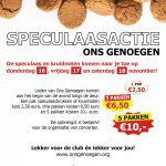 - Speculaasactie Ons GenoegenDe speculaas en kruidnoten komen naar je toe op donderdag 13 november en vrijdag 14 november! Leden van Ons Genoegen komen op die avonden binnen de bebouwde kom tussen 18.15 uur en 21.00 uur langs de deur. Een pak speculaasbrokken of kruidnoten kost 3,00 euro, drie pakken kosten 8,00 euro en 5 pakken 12,00 euro.… Lees meer: Speculaasactie Ons Genoegen